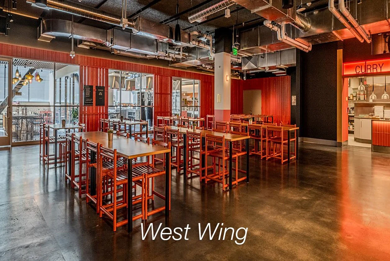 The perfect combination of our premium spaces combines the privacy of Sauna Bar and the expansive seating area of our East Wing with floor- to-ceiling windows offering views of Market Street.
